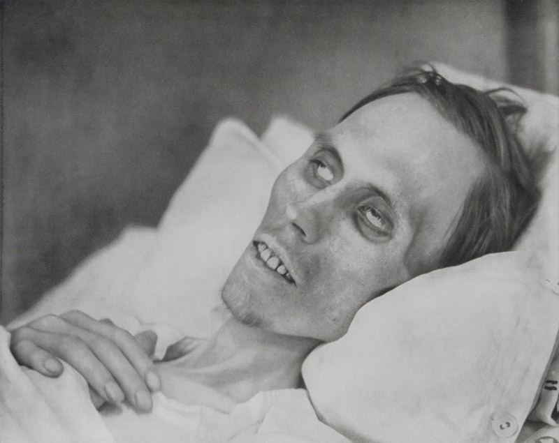 The photograph you see here is taken from the book “Facies Dolorosa: Das Schmerzensreiche Antlitz (faces of the realm of pain) by Hans Killian, 1934. It features German hospital patients near death.