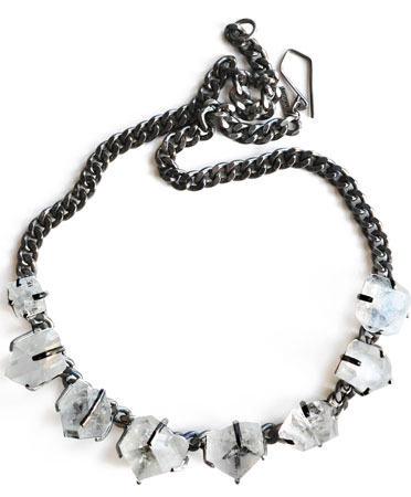 Sometimes, you’re just sat, quietly minding your own business, when something comes along and sweeps you off your feet. That’s what this 8 Stone Necklace by Unearthen did to me this afternoon. I can’t stop thinking about it now. Created from oxidised silver curb chain and eight individual apophyllite stones, it sits high on the neckline and comes to you packaged in a small leather medicine pouch. Perfection.
