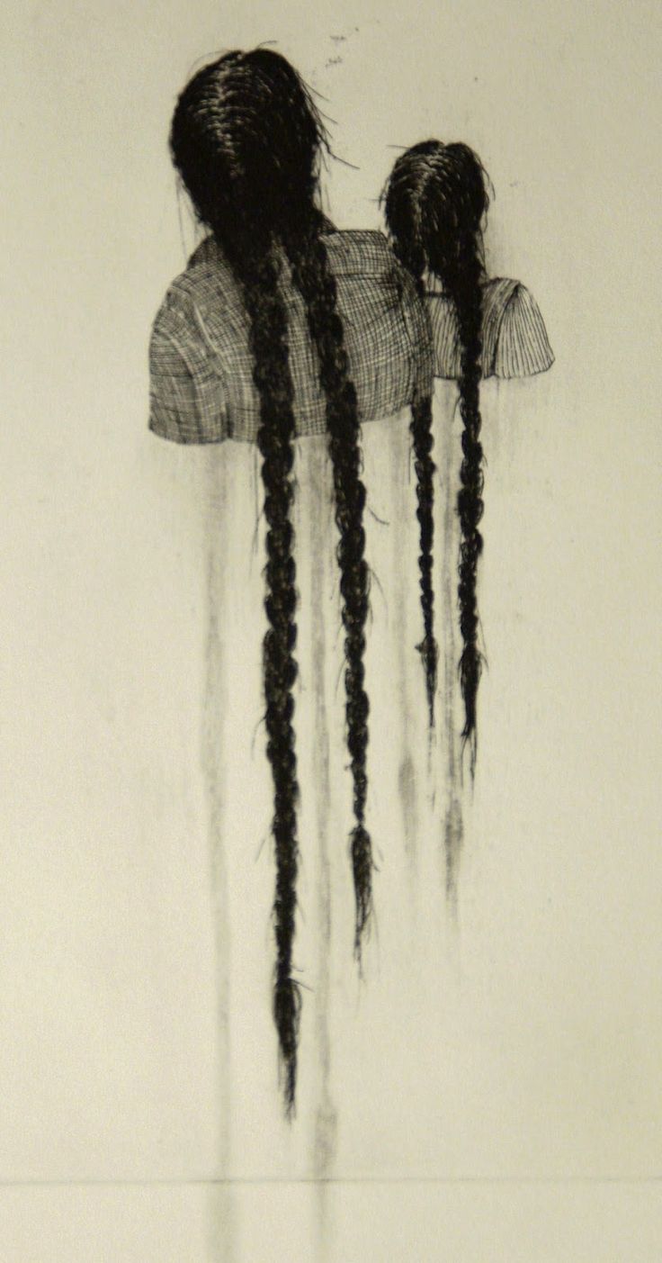 This will sound most bizarre (remember which site you’re on) but when I look at this selection of work from Dutch artist Aline Eras, I feel as though I have a hair ball stuck in my throat, that keeps trying to make it’s way up into my mouth, to wrap itself around my teeth. I’ve had the top image stored on my desktop for days, and I’ve been studying it constantly. There’s something so haunting about Eras’s work, I’m intrigued to think what the faces would look like if they happened to be revealed.