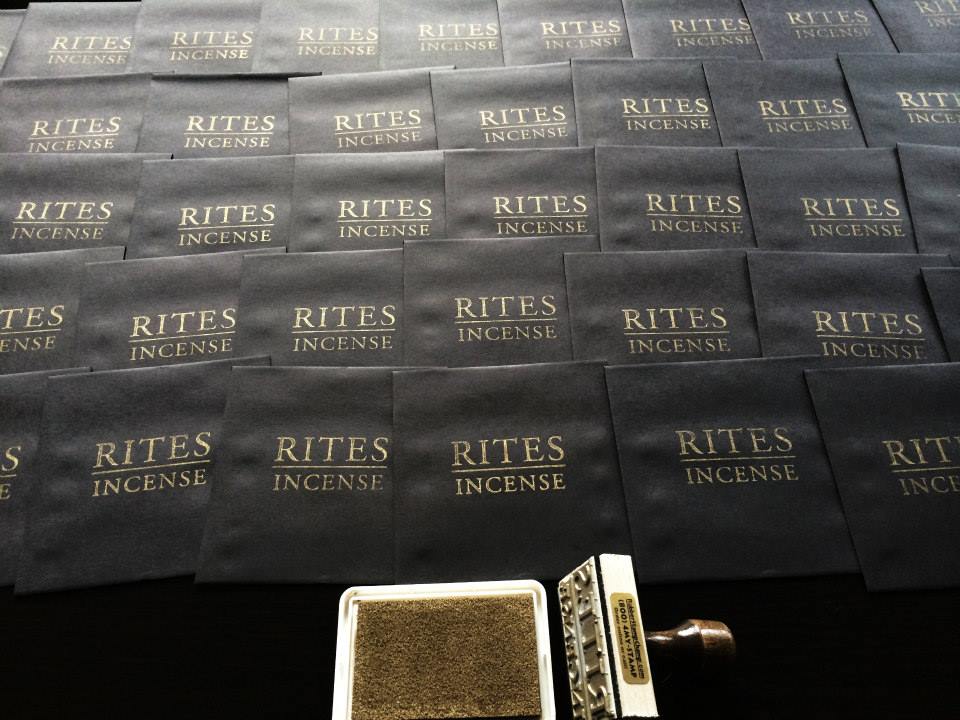 The special edition came with 2 7×10 posters, “Rites” incense handcrafted by myself and the whole was placed inside a silk screened linen bag created by Ovate. The idea of adding the posters came first, then I was starting to experiment with incense making and though it would be a nice addition to the book project, to make it a complete visual, aural and olfactory sensory experience. Then while thinking of how to put it all together in a nice packaging I had the idea to ask Audrey / Ovate if she could help in crafting some bags to place everything in. Once everything was put together the final result was quite impressive, and I’m very satisfied at how things turned out.