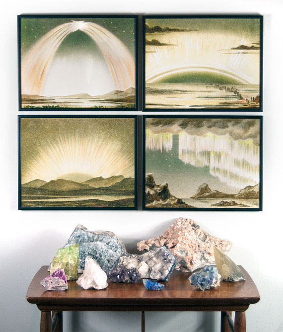 Daylight Dreams is a print and design studio based in LA who specialize in, amongst many things, making designs based on antique prints. I’ve fallen for their set of four prints of the ‘polar lights,’ along with their antique moon phases print.