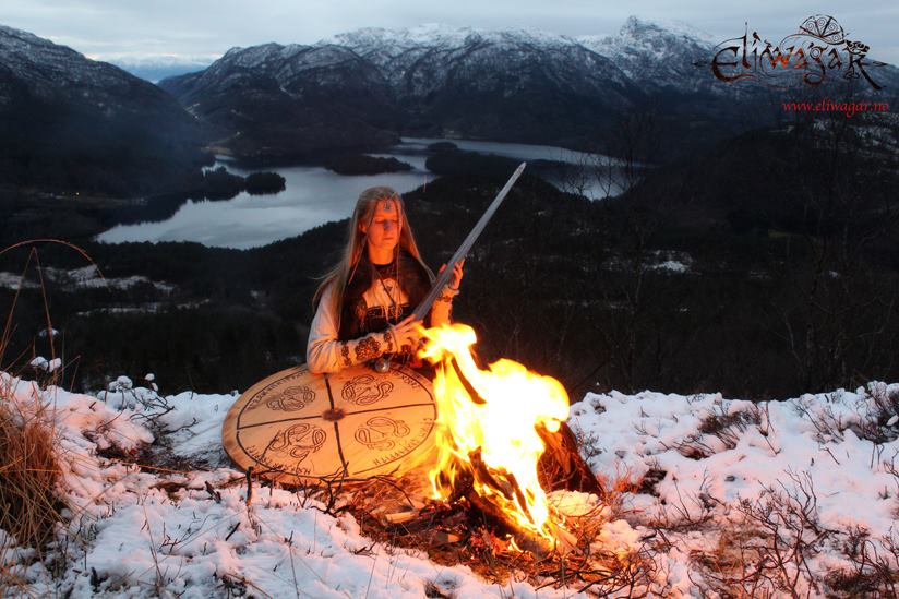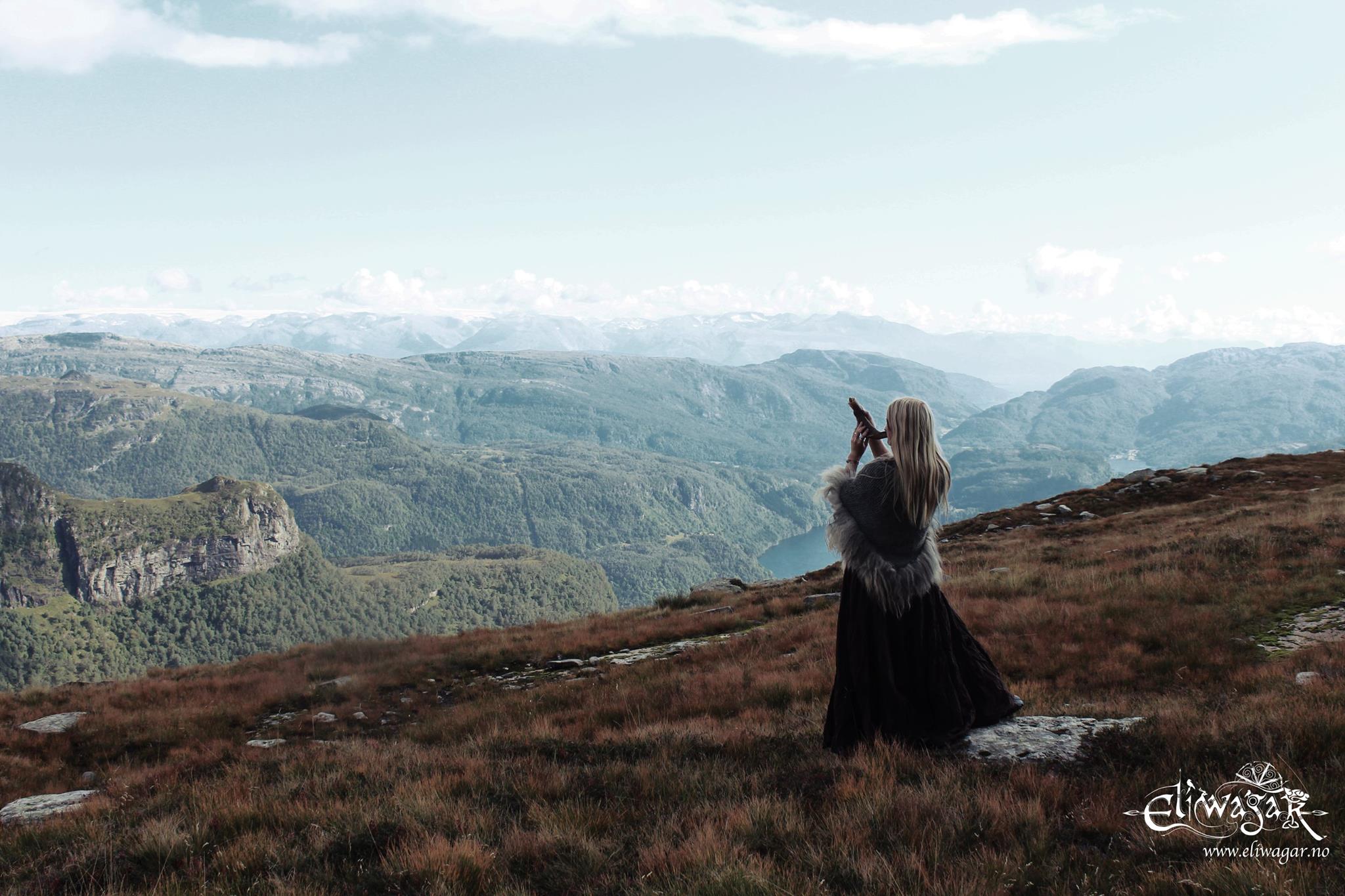 Finding a musical project which engages all of my senses and keeps me coming back for more is extremely rare nowadays, especially where Pagan folk music is concerned. So much of it sounds mediocre and rehashed. So I was delighted to come across Eliwagar the other day (thank you You Tube), a Norse Heathen Neofolk Rock project. Runahild Kvitbjarkan Fjorgynsdottir is the woman at the helm of this extremely productive project. Not only does she harness the vocals, but she is also responsible for the hardanger fiddle, flute, cello, bowed lyre, langeleik, mouth harp and shaman drums. She has session members to help with the creative process, including her husband, Bjorn Dahl.