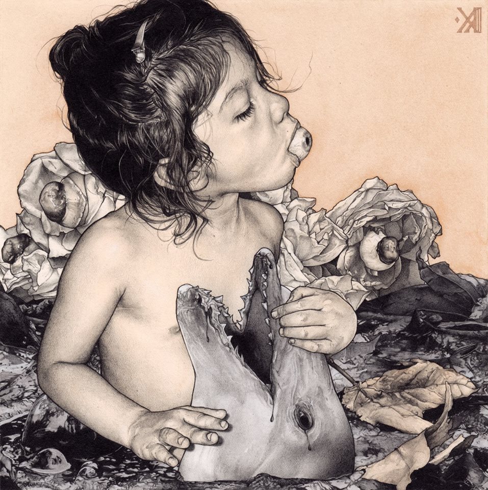 In awe of the highly detailed, grotesquely beautiful illustrations of Laura Lucia Ferrer Zamudio. I highly recommend that you pop over to her Facebook page where you can see images of works in progress and how she develops her work in stages.