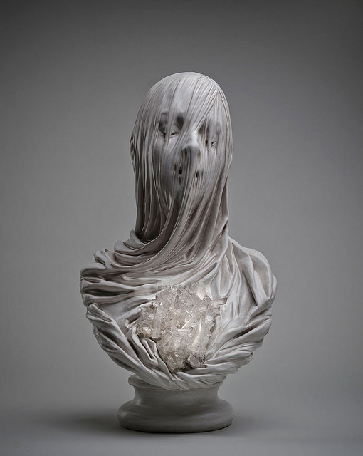 I haven’t been able to stop thinking about the work of Italian contemporary sculptor Livio Scarpella since I first encountered it a few days ago. His ghostly sculptures, craved from stone (extremely hard to believe) and embedded with crystals have a living human delicacy about them. I feel that if I were to place a hand on one of their cheeks, it would be soft to the touch.