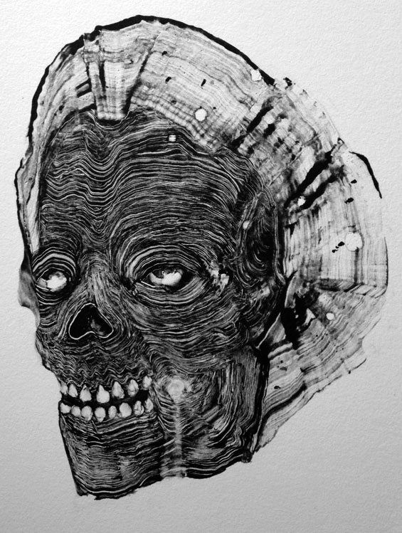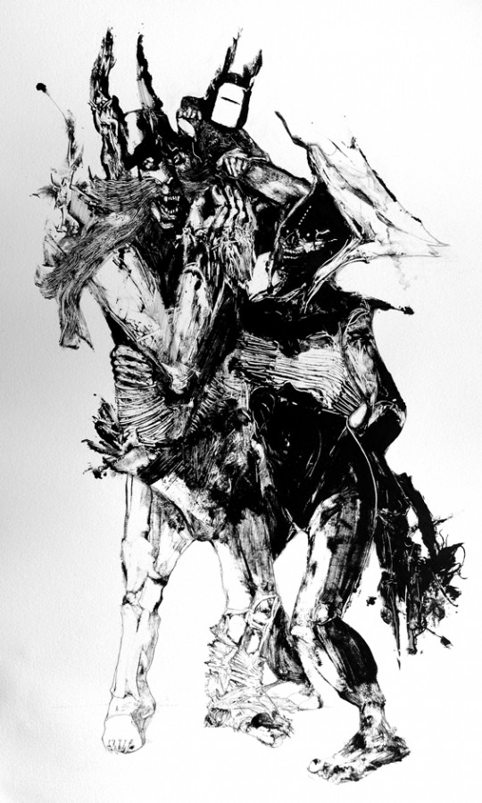 I thrive on fear. I live to feel my heart quicken and my bones shake. The monotype prints of artist Grady Gordon instal a fear which I haven’t felt in a good while. if I were to cut my finger, nothing would happen. Gorden’s gorgeously terrifying visions have frozen the blood inside my arteries.