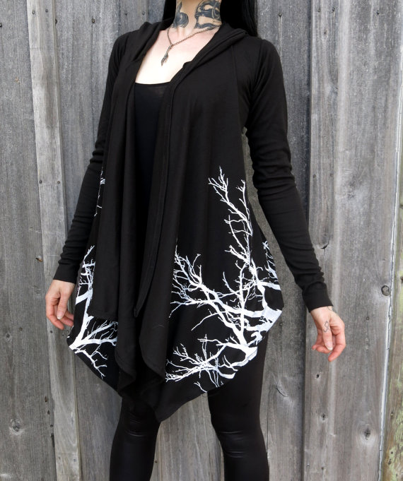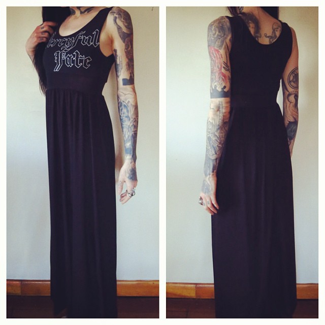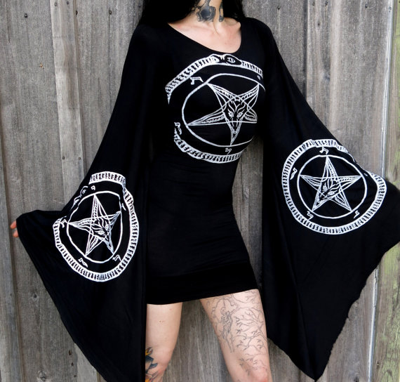 I discovered Hell Couture last year, and since my first sightings of Rebecca Conrad’s extreme metal inspired garments, I’ve been building up the courage to learn how to sew and make my own clothes. Catching sight of her Windir hooded top the other day was the good shove I needed to make a start on my dressmaking education. Hell Couture is a Must-See-Etsy-Shop for any dedicated female metal head (or bloke looking for a gift for his lass). I’m infatuated with the flared, drape sleeves and enormous hoods that feature on many of Conrad’s pieces, and the stretchy cotton fabrics which look so god damn comfy.