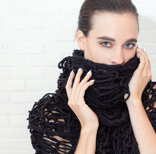 Some of my favorite pieces from YIN: the Heavy Lace Scarf by Maude Nibelungen (she originally gave it to me as a gift when I visited her in NYC, and I just had to sell it through my store, it’s a best seller!), the Asymmetrical Drop Crotch pants by Eleen Halvorsen (these pants will literally change your view of the traditional “harem/drop crotch pant”), and the Trouser Skirt by Sadie Clayton (probably the most experimental piece we currently have on Velvit, I applaud this London designer for every risk she takes). I wear my 1-100 bar earring every day, it’s so simple but I always get compliments on it. The Monochromatic Necklace by LaLaYeah is my go-to piece for any dress or tunic I wear. I never leave home without my