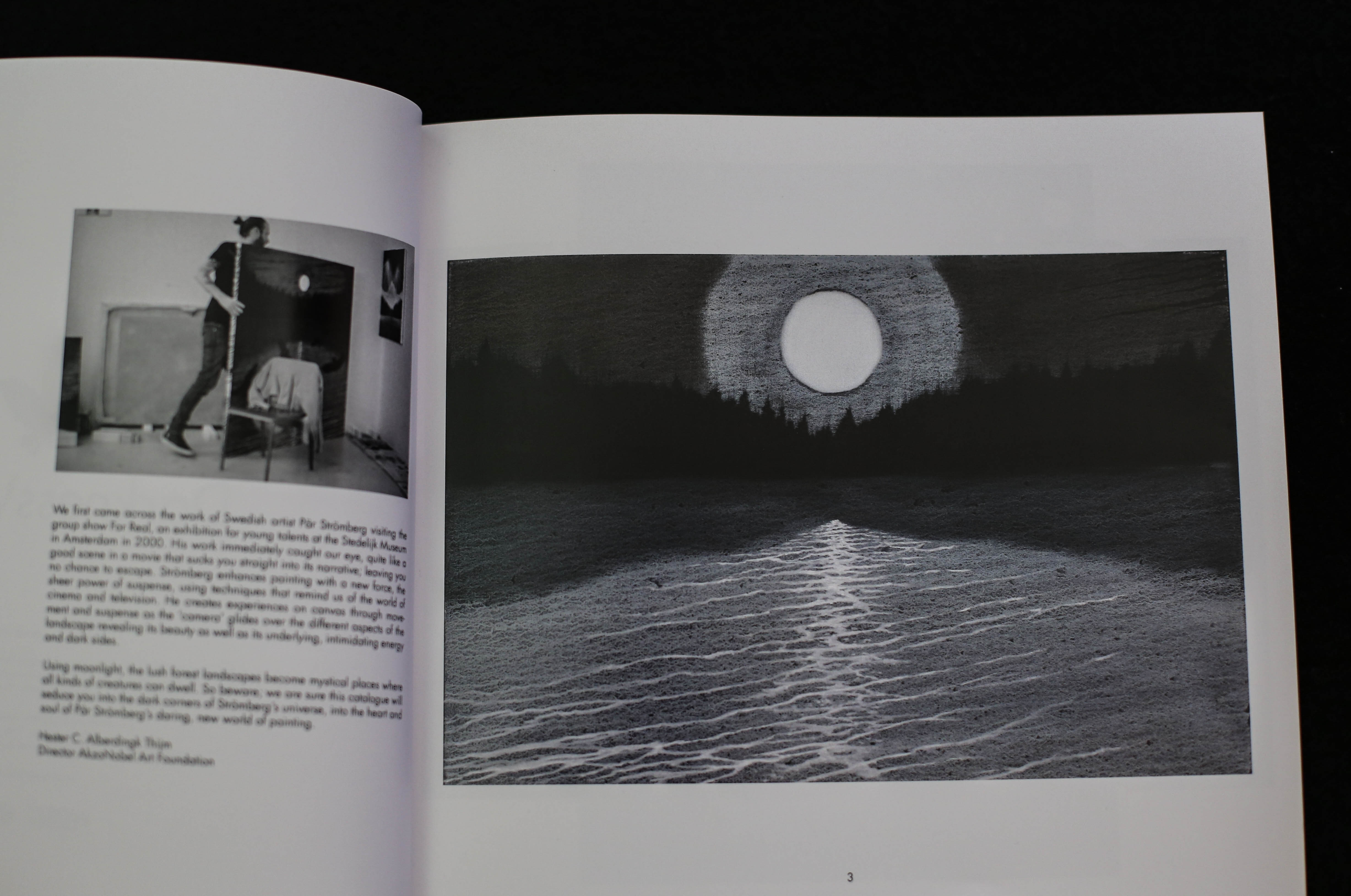 “Sumptuous landscapes with forests, seas, ice and mountains. Sharp contrasts between light and dark. Nature looms ominously and mysteriously in Pär Strömberg’s art. Far removed from the colorists – the palate here is black, white and grey – he nevertheless works in a classic, modernistic painting tradition. – Frida Cornell