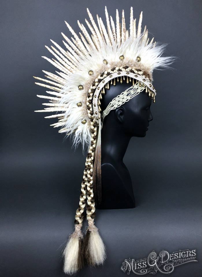 There is nothing better than starting the week having your heart invaded by art. This morning my attention is fully gifted to Miss G Designs and her awe inspiring headdresses. LA based Miss G has no formal training or schooling in fashion design and simply learns as she goes along, which makes her creations all the more impressive. You can find her Etsy store here.