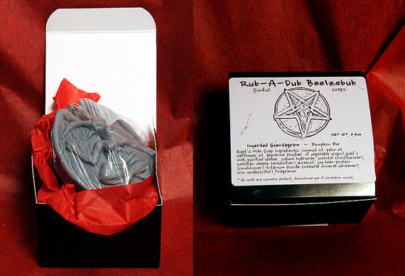 I’m really rather taken with the Satanic bath and body products from Bizarro Au Go Go. I’m not overly bothered about their other offerings, but their sinful soaps, made with all natural vegan shea butter, and fragranced with high quality, hand blended, phthalate free essential and fragrance oils are irresistible.