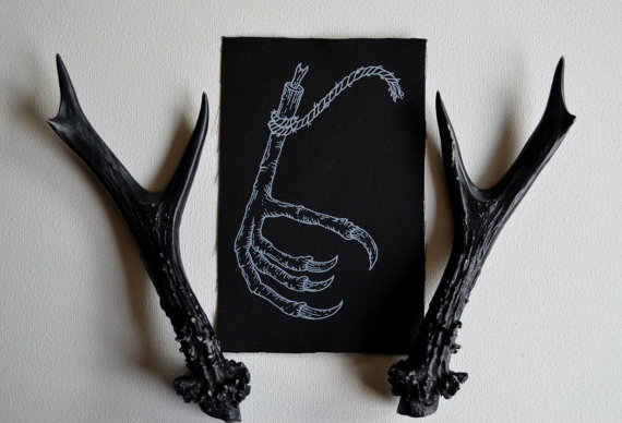 I only stumbled across Etsy store WishboneMM today, but I’m already smitten with the highly original, beautifully dark and affordable prints that they have available on paper and patches, totes and t-shirts. Here are some of my favourite patches.