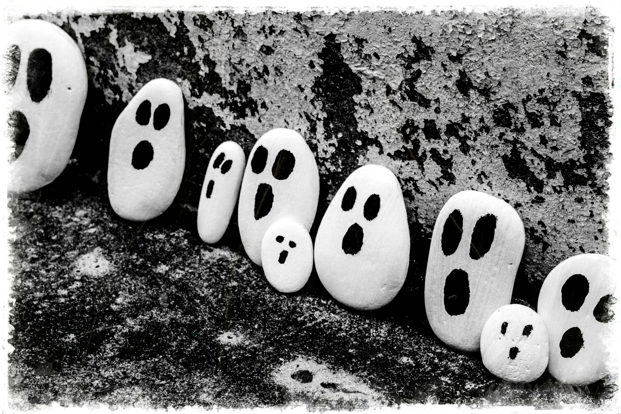 If you’d like to make some ghosts of your own, first you’ll need to go and comb your beach for stones. Look for flat and smooth ones of varying sizes. When you’re back home, wash your stones with a damp cloth and leave them to dry.