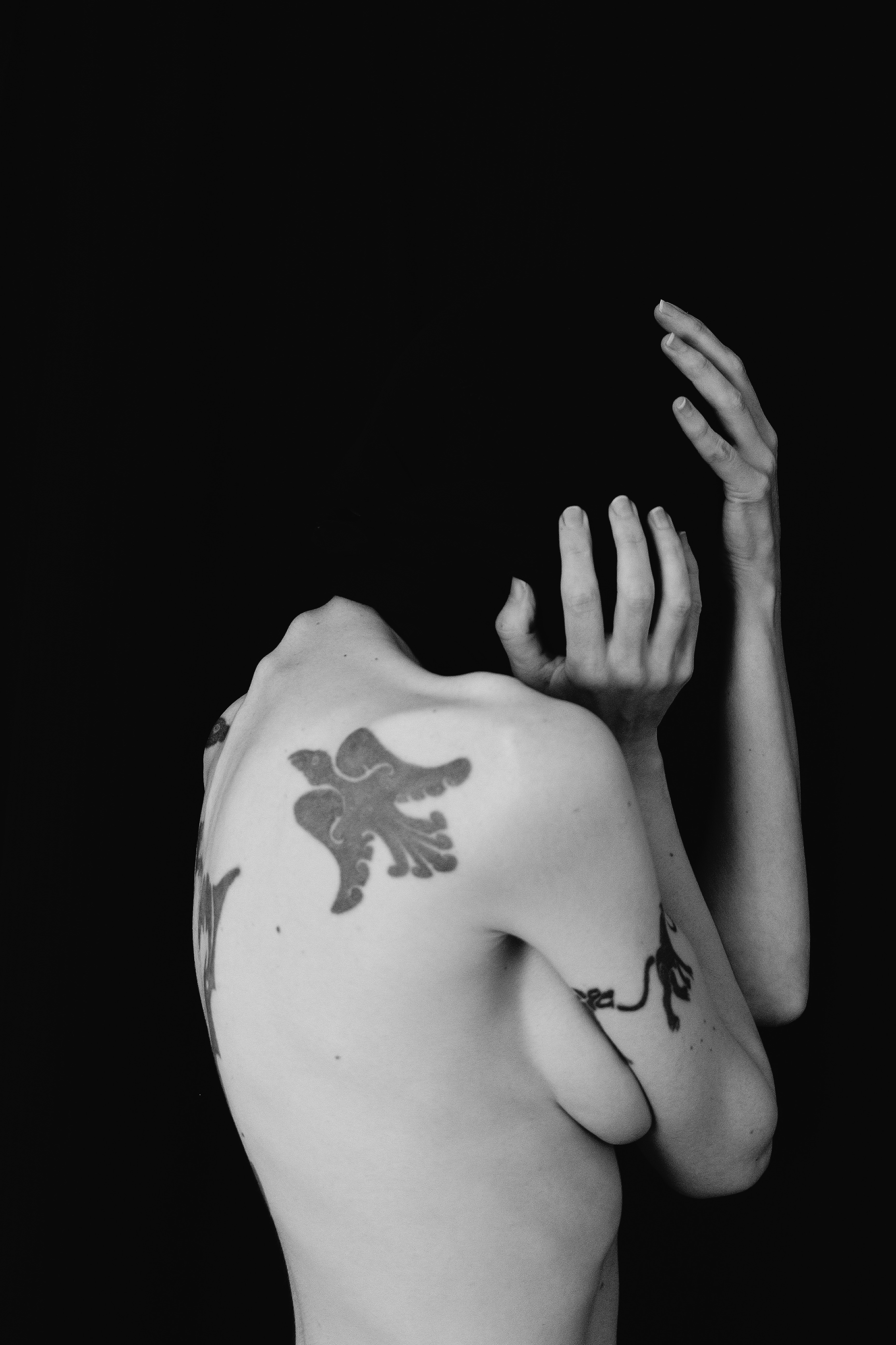 I slung a black scarf over my bedroom door as a makeshift backdrop, opened my curtains to let the light in, put my camera on a tripod, set up my camera’s self-timer and, makeup-less and bedraggled, photographed my agony.