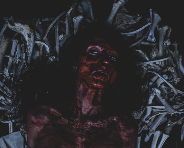 I was supposed to be sharing self-portraits just from June, but ended up with some of July’s in the June’s Portraits folder and I’m too knackered to take them out now, so you’re getting some of July’s creations too. And before you scream in the comments, yes, I’m very much aware that the bone in the first few images looks like an erect penis. It only dawned on my when I got home from the woods and edited the photos. Too much effort went into the shoot to do away with the pictures.
