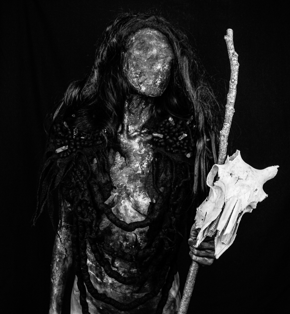 I was supposed to be sharing self-portraits just from June, but ended up with some of July’s in the June’s Portraits folder and I’m too knackered to take them out now, so you’re getting some of July’s creations too. And before you scream in the comments, yes, I’m very much aware that the bone in the first few images looks like an erect penis. It only dawned on my when I got home from the woods and edited the photos. Too much effort went into the shoot to do away with the pictures.