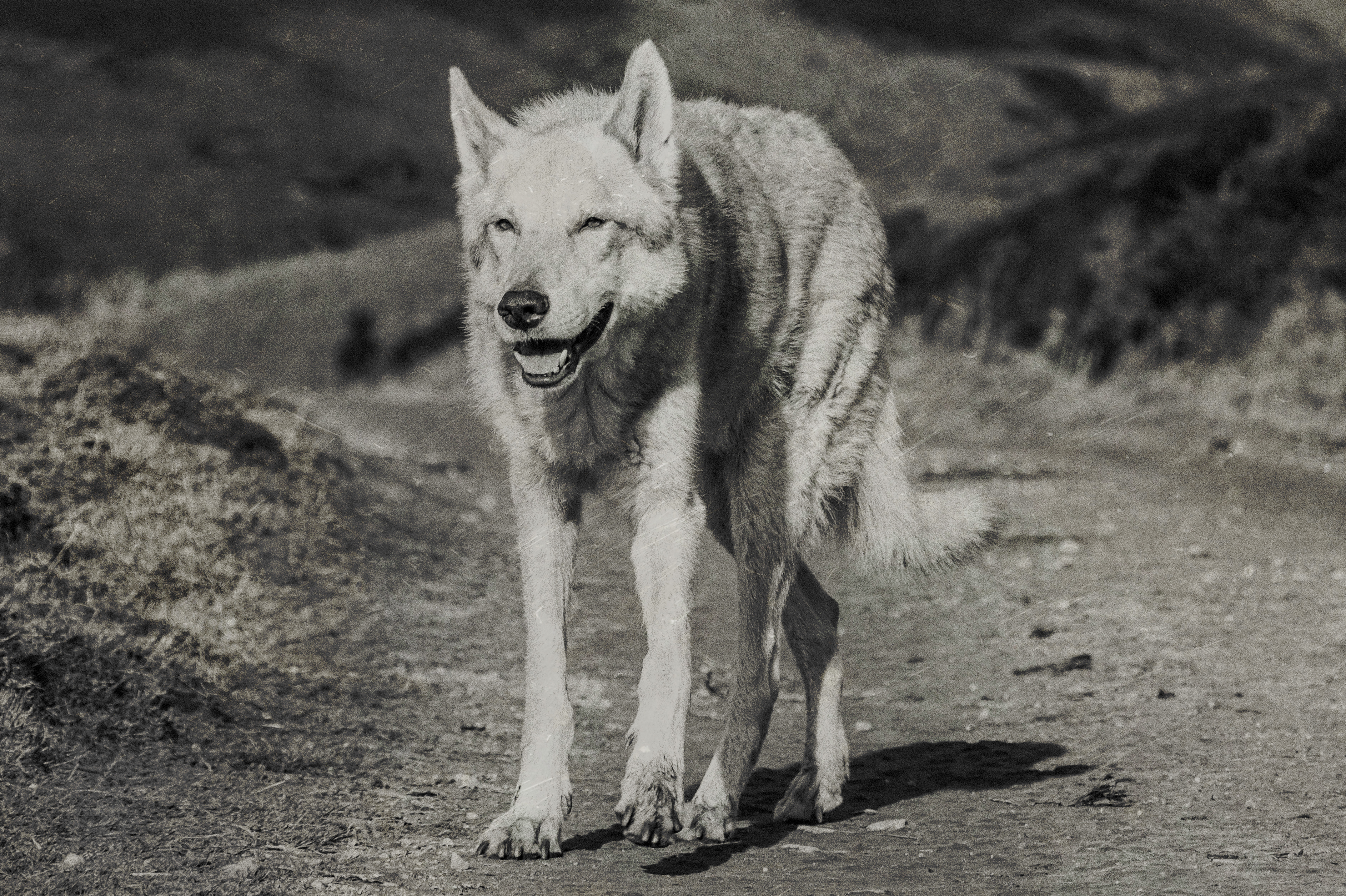 As we took off for the hills, I was fizzing with bliss. I snapped away at Humphrey with my camera, and felt drunk on the delight of enjoying photography again, on observing my subject loping through the countryside and on the wisdom I was being fed by Nathan who’s knowledge on wolfdogs (and nature as a whole) was deliciously moreish.