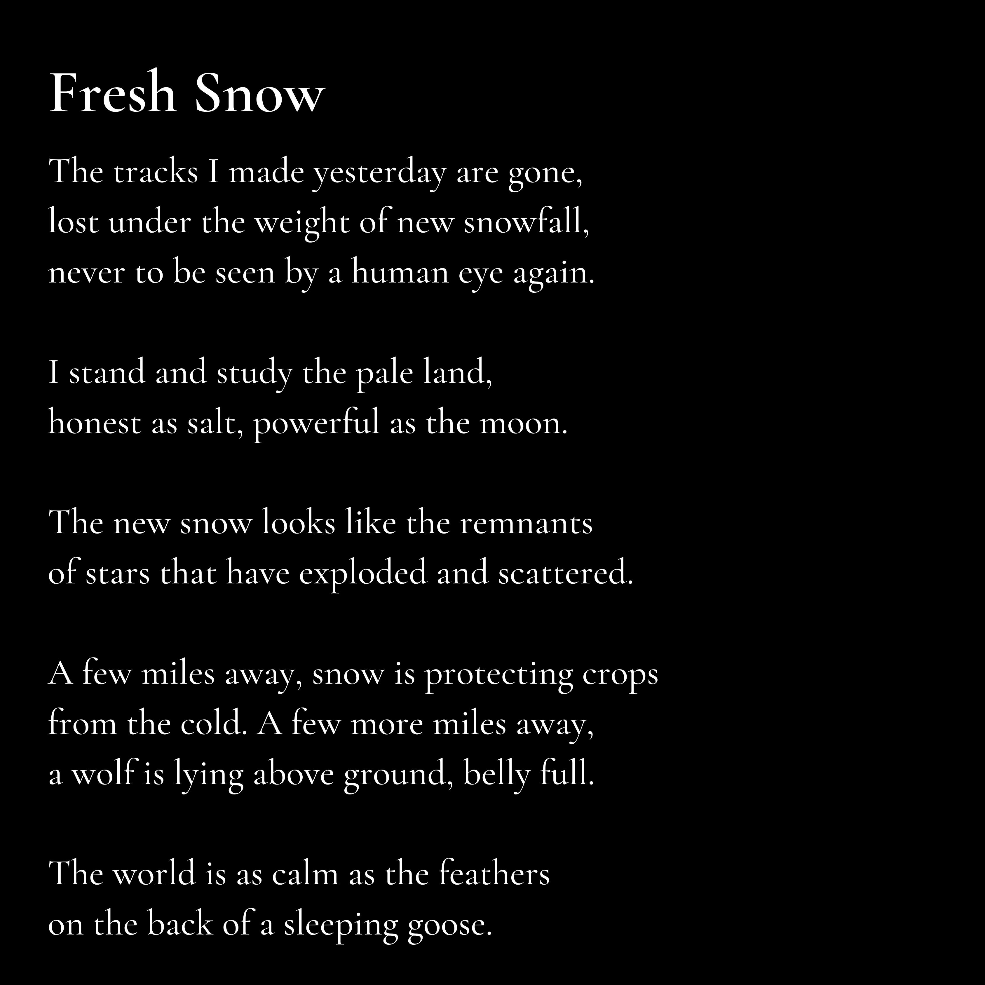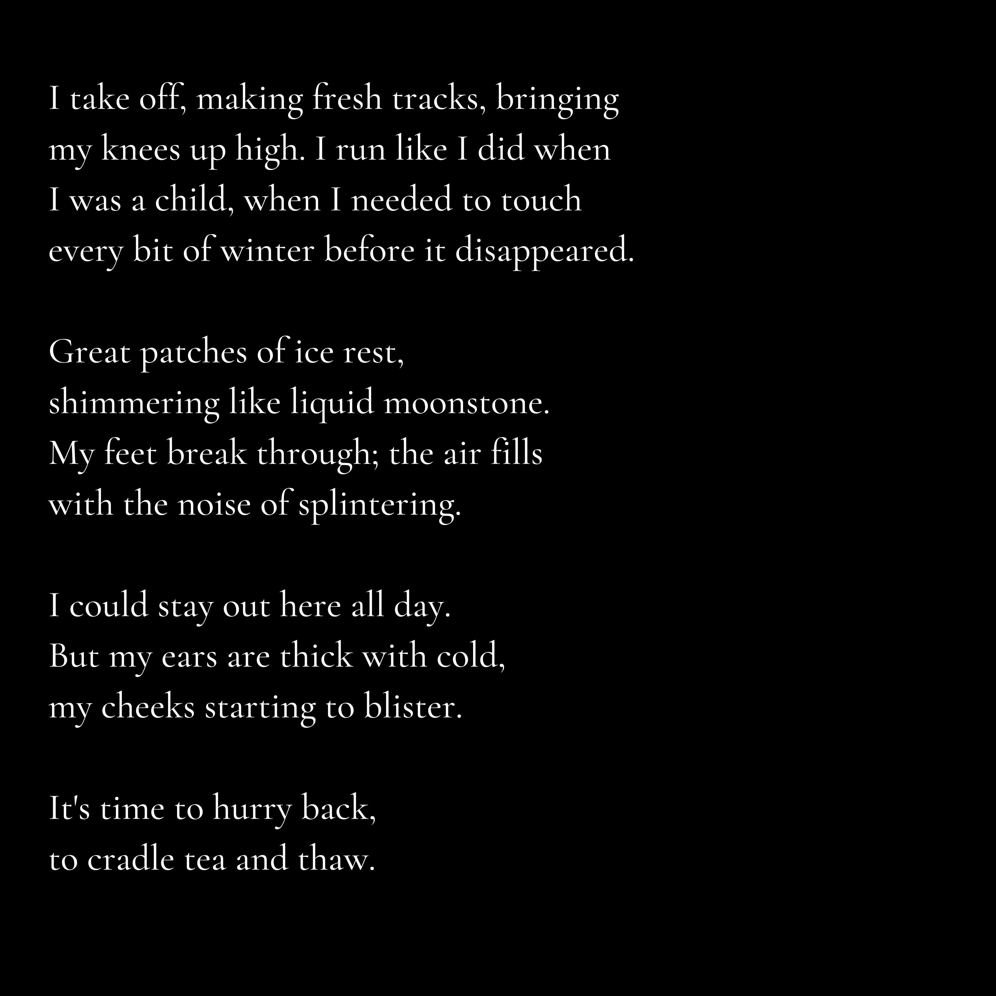 Below is a poem I wrote in Canada in 2015, where winter was unforgiving and beautiful on mythical scales. My winter there was also the first time I experienced -30 and below temperatures. George RR Martin wrote, ‘Nothing burns like the cold.’ He was right. But how I crave it.