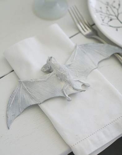 Raise The Horns For Halloween / White Painted Bat Napkin Setting